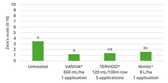 With root infection deemed commercially damaging in the untreated samples, Vaniva significantly reduced the incidence of root galling compared to the untreated (Figure 1).