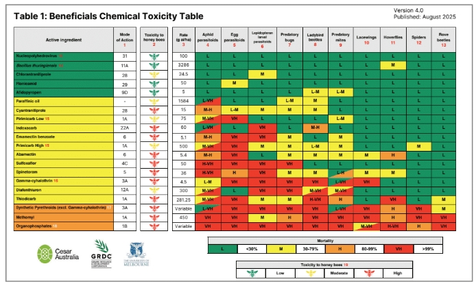 It was developed with input from industry and research partners together with independent laboratory testing to give growers and advisers a clear, single reference to the impact of insecticides on beneficials when making spray decisions.