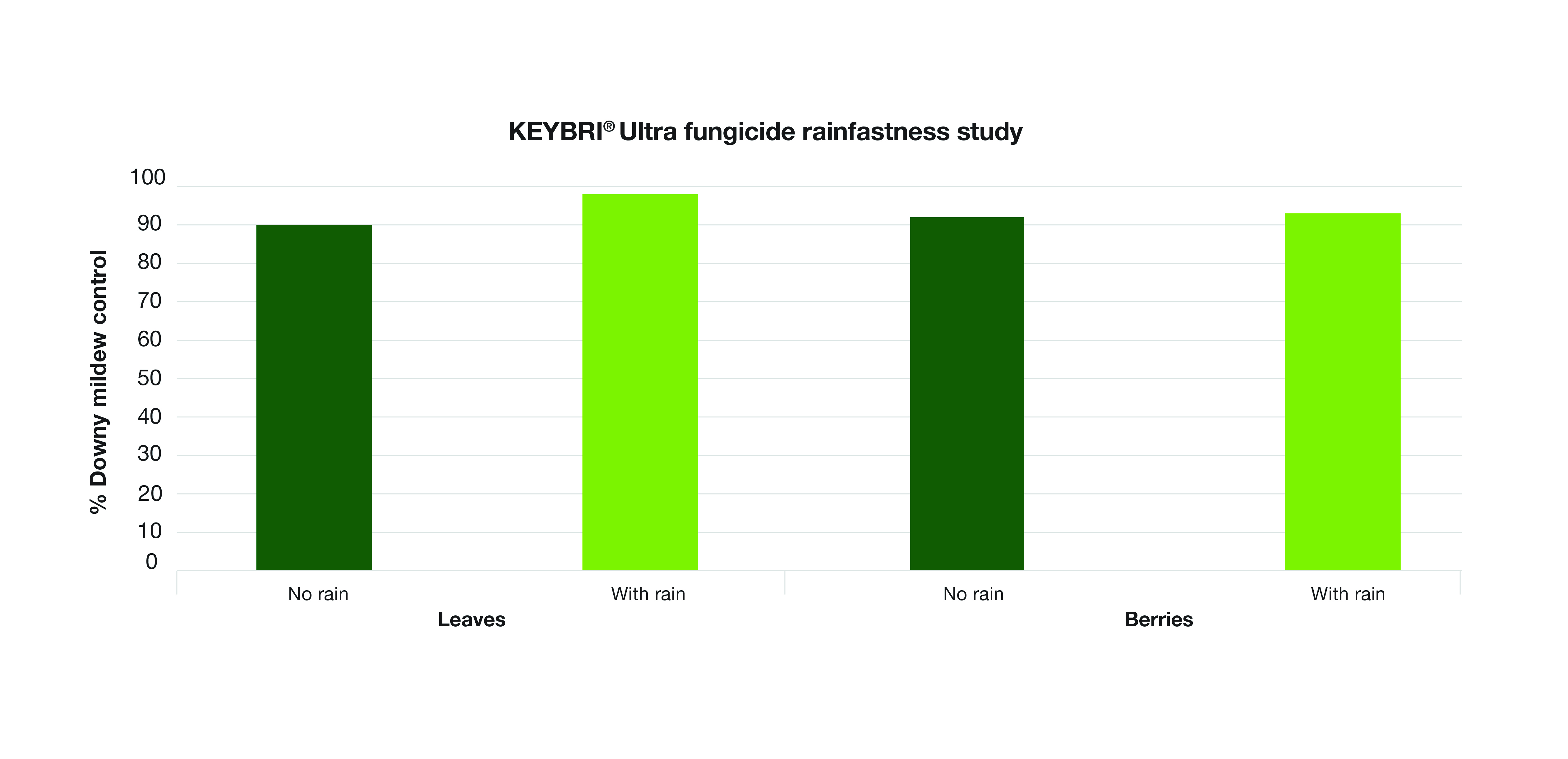 Growers can be confident Keybri Ultra will continue to offer strong protection, controlling downy mildew even during challenging conditions where access to vineyards for post infection sprays may not be possible.