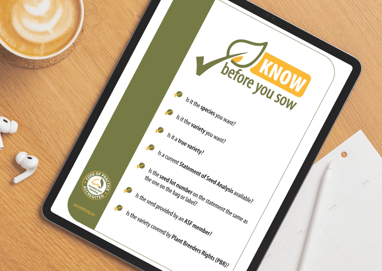 To take the guess work out, ASF has developed the simple Know Before You Sow Checklist to ensure you ask the following key questions before you buy seed: