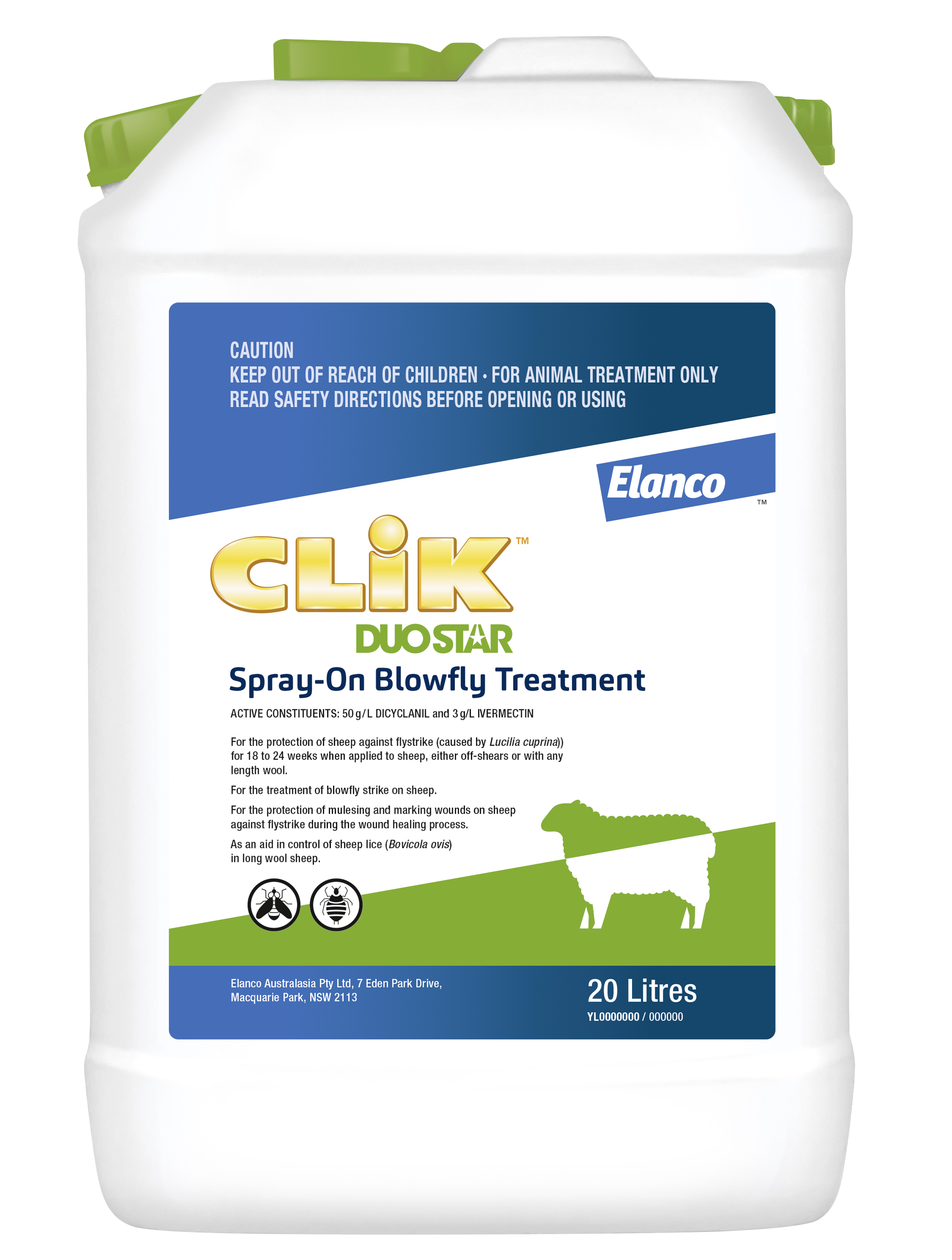 CLiK Duostar is a unique combination of 50g/L dicyclanil and 3g/L ivermectin, two proven active ingredients used for the prevention and/or treatment of blowfly strike.