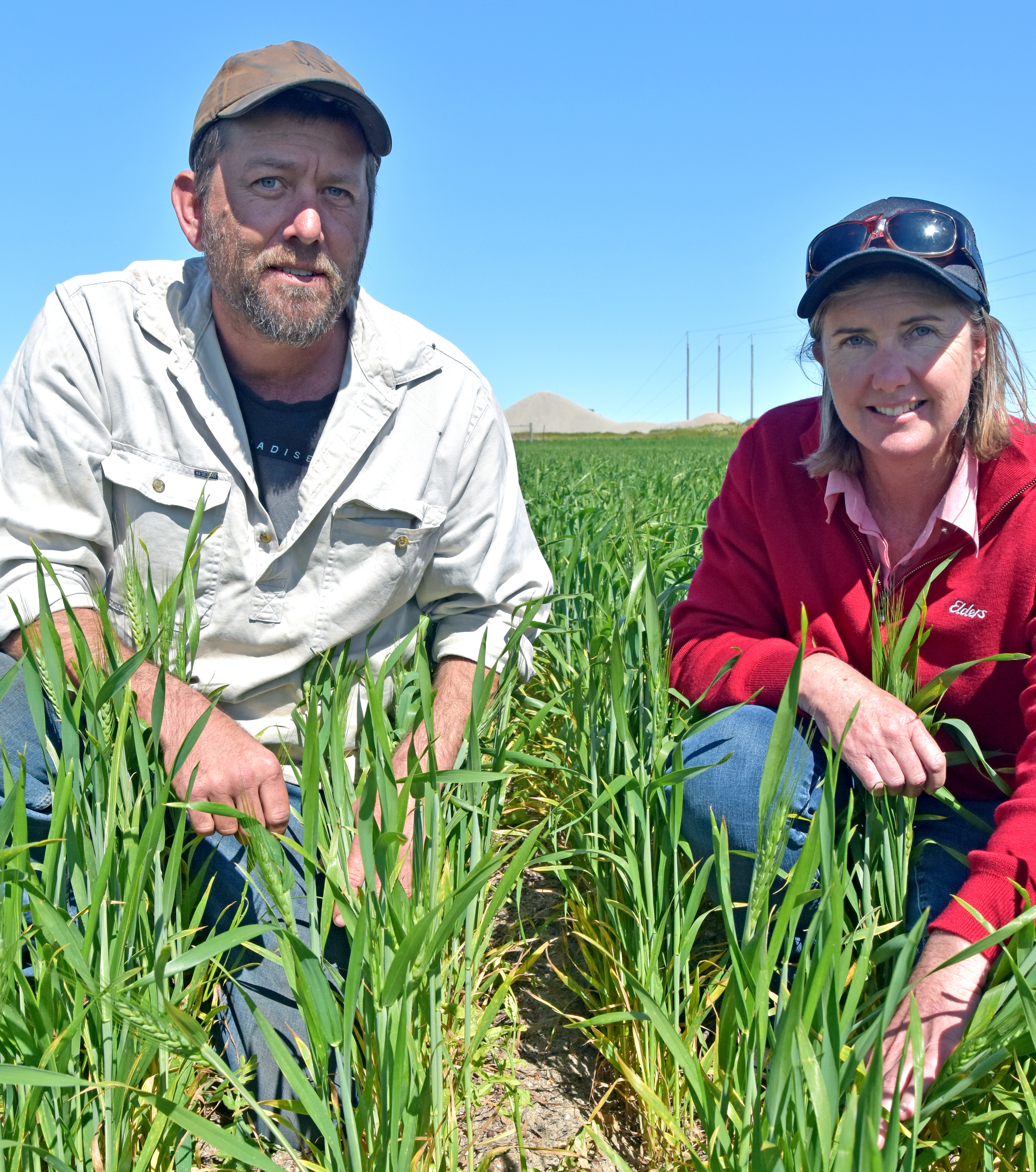 The Parkers farm at Marchagee and Gunyidi, where they grow wheat, canola, lupins and barley on sandplain through to heavy soils, including on leased country.