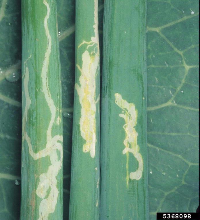 Its larvae feed internally on plant tissue, particularly the leaf, causing distinctive mine damage which may appear as pale ‘squiggly’ or ‘serpentine’ patterns. Severe unmanaged infestations may result in premature leaf drop, poor growth and reduced crop yields.