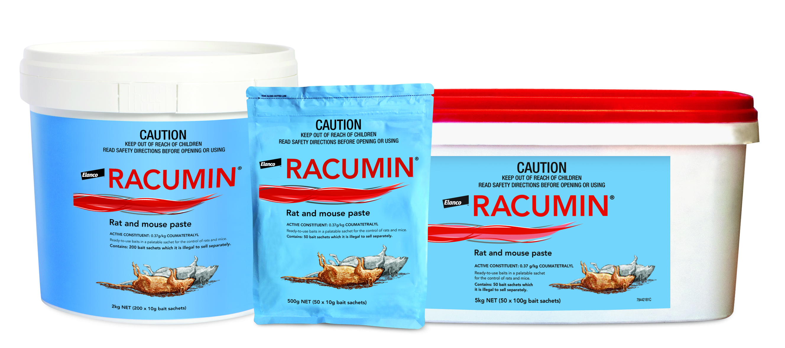 Racumin Rat and Mouse Paste is available in 500g, 2kg and 5kg pack sizes.